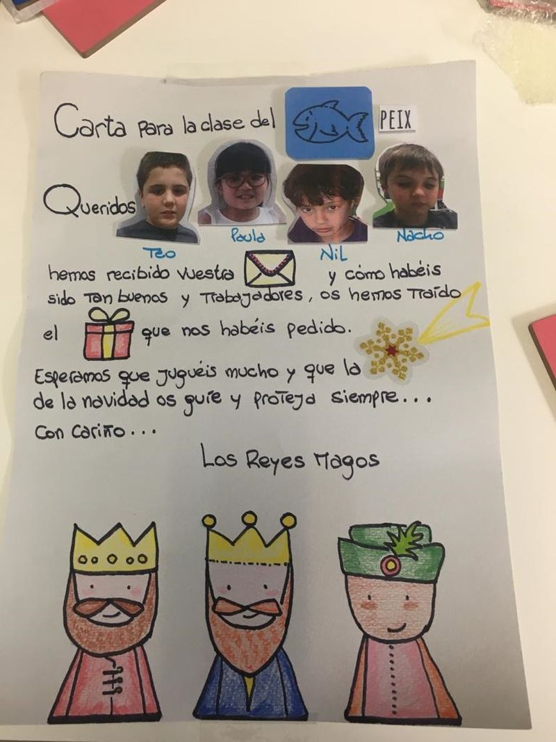 Gràcies a la nostra AFA que es va encarregar de parlar amb els Reis d’Orient i van aconseguir que portessin els regals acompanyats d’una carta de resposta  per cada grup.